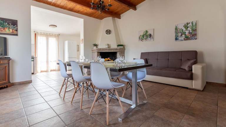 Die Villa umfasst 2 Schlafzimmer, ein Wohnzimmer sowie eine komplett ausgestattete Küchenzeile mit Kühlschrank und Kaffeemaschine. Des Weiteren stehen 2 Badezimmer mit Bidet und Dusche zur Verfügung. Handtücher und Bettwäsche werden bereitgestellt.