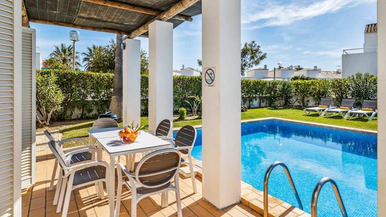 Die Villa verfügt über 3 Schlafzimmer, eine gut ausgestattete Küche mit Kühlschrank und Geschirrspüler sowie 3 Badezimmer, die jeweils mit einer Dusche, einem Haartrockner und einer Waschmaschine ausgestattet sind. Handtücher und Bettwäsche werden bereitgestellt.