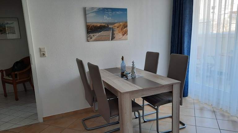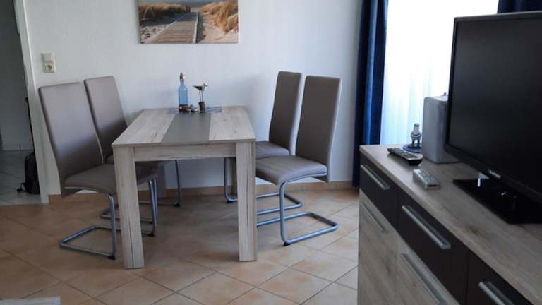 Die Ferienwohnung verfügt über ein Schlafzimmer, ein Wohnzimmer sowie ein modernes Badezimmer mit Dusche. Zur Ausstattung gehören ein Flachbild-TV, eine gut ausgestattete Küche mit Kühlschrank und Geschirrspüler sowie ein Wohnbereich. Handtücher und Bettwäsche können gegen Aufpreis bereitgestellt werden.