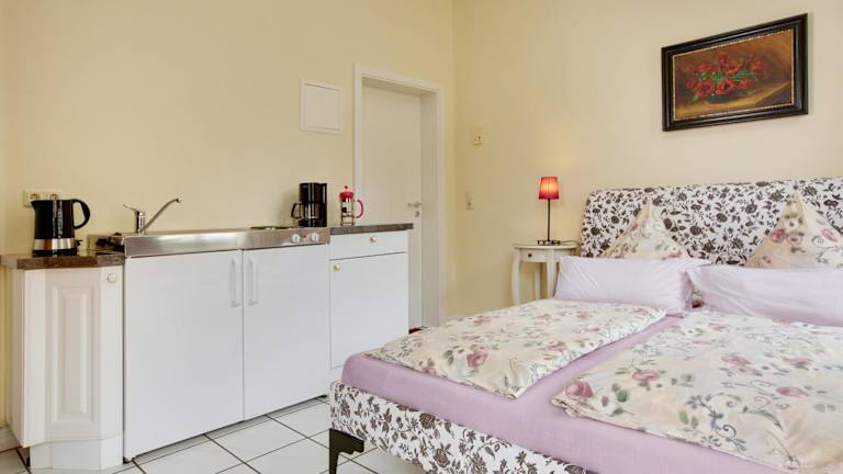 Die Ferienwohnung bietet 1 Schlafzimmer mit einem TV, einer gut ausgestatteten Küchenzeile (mit Kühlschrank und Toaster) sowie 1 Badezimmer mit Dusche.