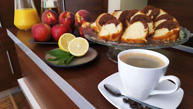 Jeden Morgen wird ein kontinentales Frühstück im modernen Speisesaal serviert. Die Gäste haben Zugang zu einer Gemeinschaftsküchenzeile mit Kühlschrank und Kaffeemaschine. Essenslieferung in die Unterkunft ist ebenfalls möglich.