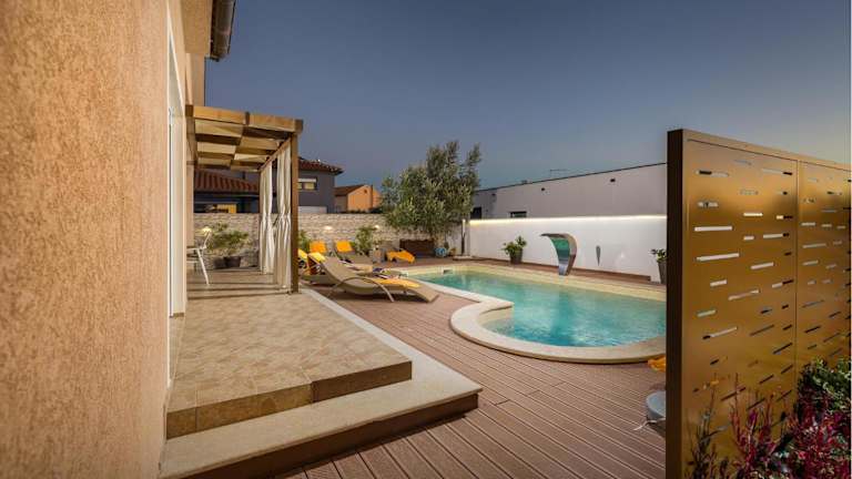 Die Unterkunft Villa Magnolija bietet ein heimeliges Ferienhaus mit kostenlosem Wifi und Klimaanlage. Dieses Ferienhaus verfügt über einen eigenen Pool, einen Garten sowie eine kostenlose Parkiermöglichkeit.