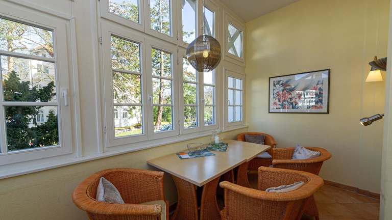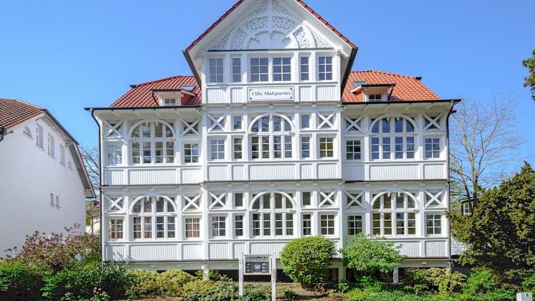 Die Villa Malepartus - Wohnung 03 bietet eine heimelige Unterkunft für Gäste, die einen erholsamen Aufenthalt in Binz suchen. Die Unterkunft ist eine Nichtraucherunterkunft und bietet Parkiermöglichkeiten. In der gesamten Villa besteht die Möglichkeit, kostenfreies Wifi zu nutzen.