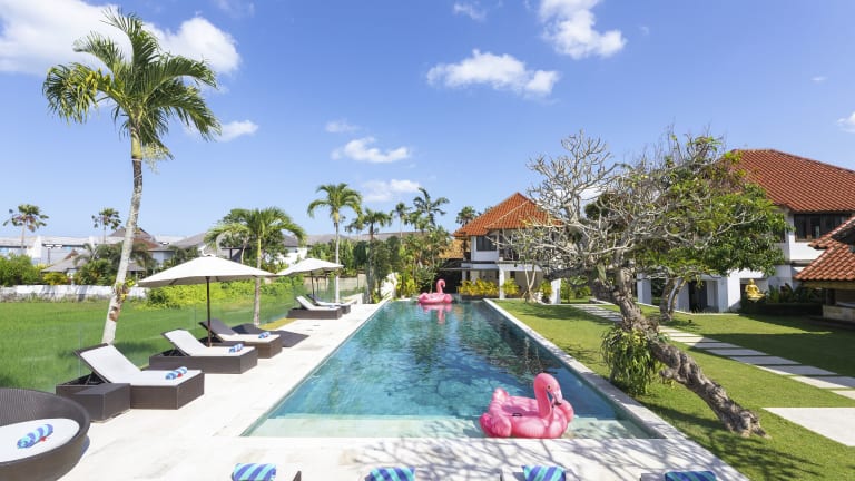 Die Villa Manis Canggu bietet Übernachtungsmöglichkeiten mit einem einladenden Garten, einem Aussenpool und einer Terrasse. Die Unterkunft ist klimatisiert und verfügt über Annehmlichkeiten wie einen eigenen Pool, einen Whirlpool und eine Sauna. Zimmerservice und ein Flughafentransfer sind ebenfalls verfügbar.