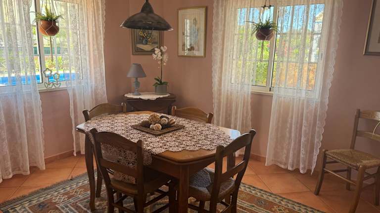 Die Zimmer sind ausgestattet mit Bettwäsche, Handtüchern, einem TV, einem Essbereich und einer voll ausgestatteten Küche. Die Villa bietet sowohl einen Balkon als auch eine Terrasse mit Meerblick und ermöglicht den Gästen den Zugang zu einem Aussenpool.