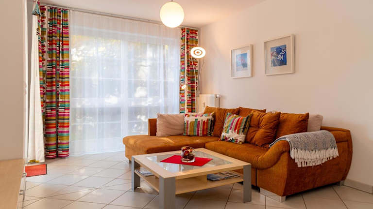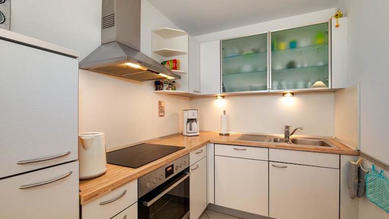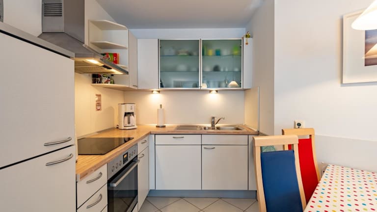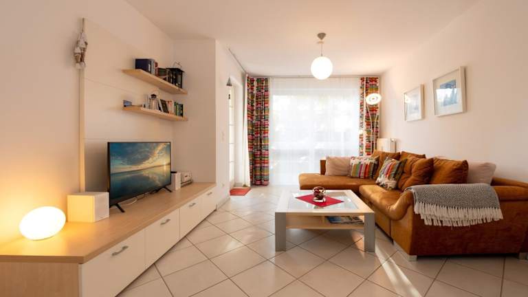Die Ferienwohnung verfügt über ein Schlafzimmer, ein Wohnzimmer und eine voll ausgestattete Küche, die mit einem Kühlschrank und einer Kaffeemaschine ausgestattet ist. Ein Badezimmer mit Dusche ist ebenfalls vorhanden. Zur Ausstattung gehört außerdem ein TV sowie eine Terrasse.