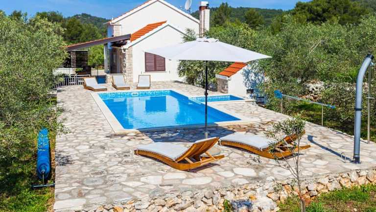 Die Villa Mariela in Korcula bietet Übernachtungsmöglichkeiten mit einem beheizten Pool, einem Whirlpool und einem Garten. Es handelt sich um eine komfortable Unterkunft mit einer Terrasse, die einen herrlichen Bergblick bietet. Die Villa verfügt über eine gut ausgestattete Küche und private Parkiermöglichkeiten.