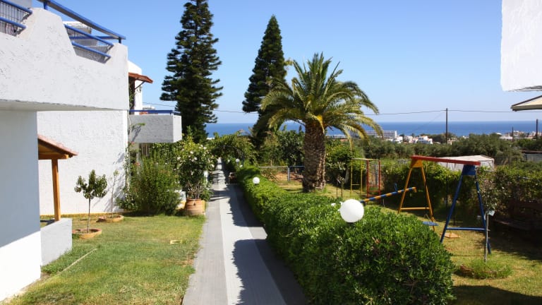 Die Villa Marina befindet sich in Chersonissos, etwa 800 Meter vom Sandstrand entfernt. In unmittelbarer Nähe liegen der Hauptstrand von Anissaras und das Cretaquarium Thalassocosmos.