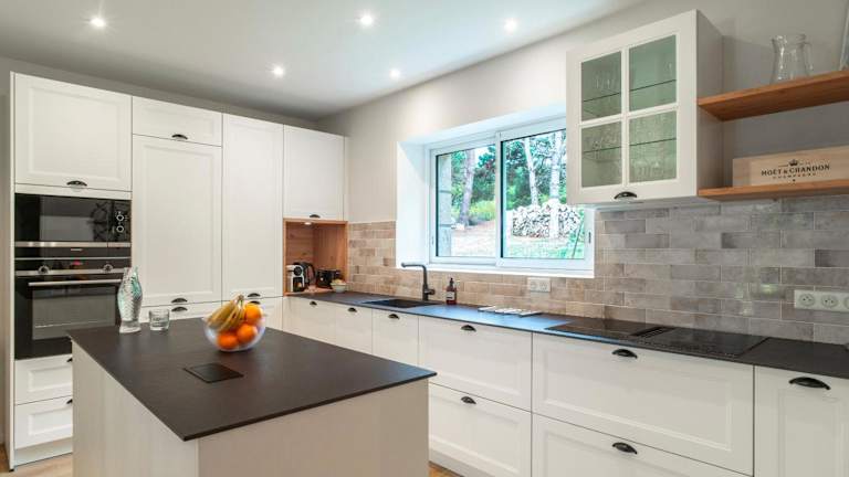 Das Ferienhaus umfasst 4 Schlafzimmer, ein Wohnzimmer mit TV, eine gut ausgestattete Küche mit Kühlschrank und Geschirrspüler sowie 3 Badezimmer mit Dusche. Die Terrasse bietet Meerblick. In der Unterkunft sind Nichtraucherzimmer vorhanden.