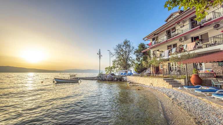 Die Villa Marko - Trpejca liegt in Ohrid, nur 4,4 km von der Knochenbucht entfernt, direkt am Strand. Der Ohridsee befindet sich 10 km entfernt, während Plaošnik 21 km von der Unterkunft entfernt ist. Der nächstgelegene Flughafen ist der Flughafen Ohrid, 28 km von der Villa entfernt.