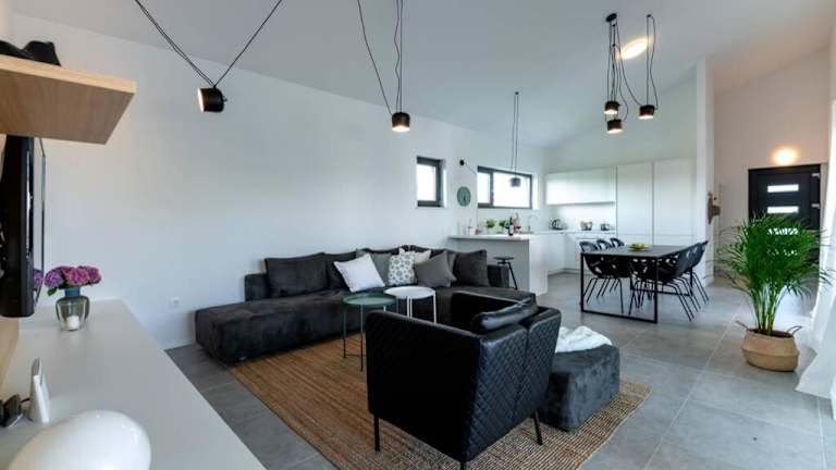 Die Villa umfasst 3 Schlafzimmer, ein Wohnzimmer und eine voll ausgestattete Küche mit Kühlschrank und Kaffeemaschine. Zudem stehen den Gästen 3 Badezimmer mit Dusche und Haartrockner zur Verfügung. Handtücher und Bettwäsche werden bereitgestellt.