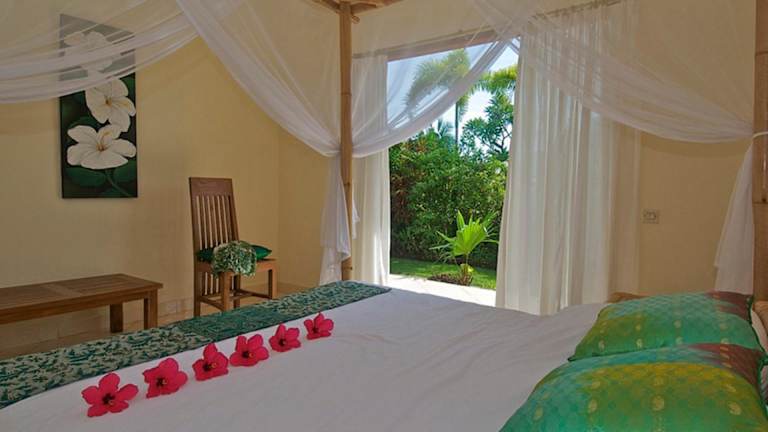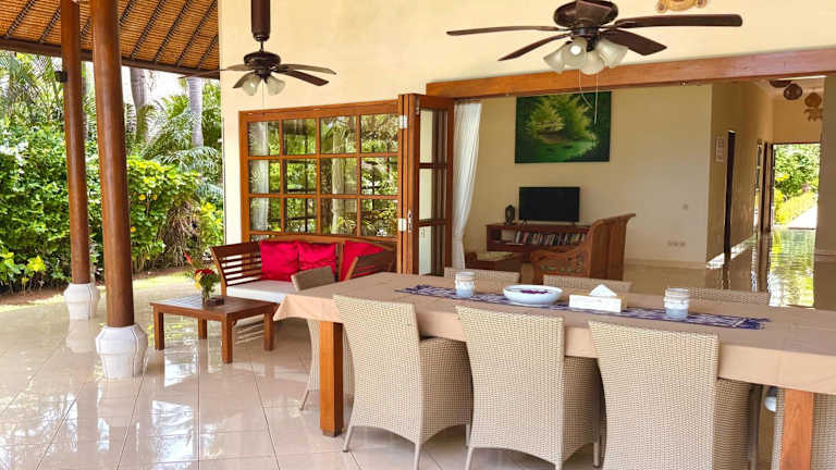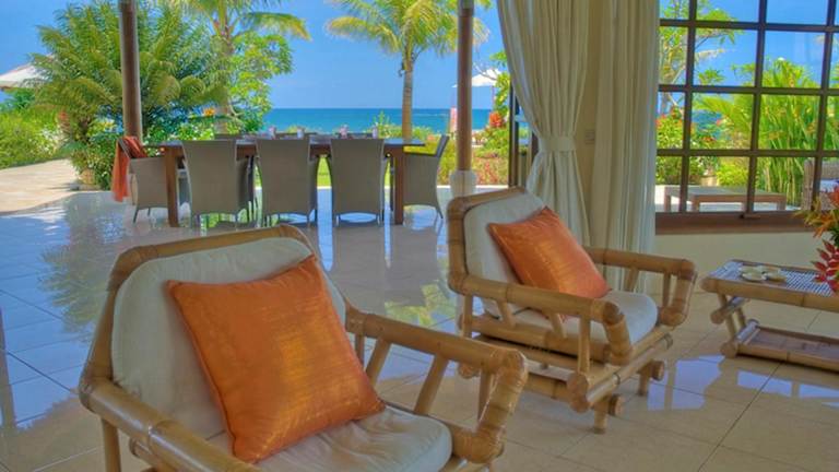 Die Villa Mawar verfügt über 4 Schlafzimmer und 4 Badezimmer, die Platz für eine große Familie oder eine Gruppe von Freunden bieten. Die Zimmer sind komfortabel eingerichtet und verfügen über hochwertige Bettwäsche und Handtücher. Zur Ausstattung gehören auch ein Flachbild-Sat-TV, ein Essbereich und eine voll ausgestattete Küche, in der Sie Ihre eigenen Mahlzeiten zubereiten können. Genießen Sie den Meerblick von der Terrasse und entspannen Sie sich am Außenpool oder im Garten.