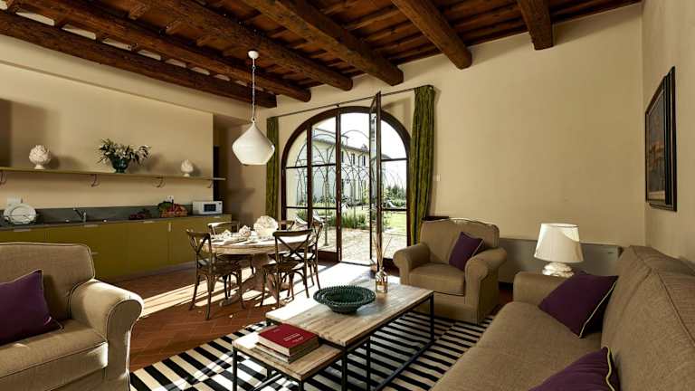 Die Villa Medicea di Lilliano liegt in der malerischen Region Toskana in Grassina, umgeben von einer idyllischen Landschaft. Der bekannte Ponte Vecchio und die Uffizien befinden sich lediglich 10 km entfernt, während der Flughafen Florenz in einer Distanz von 20 km zu erreichen ist.
