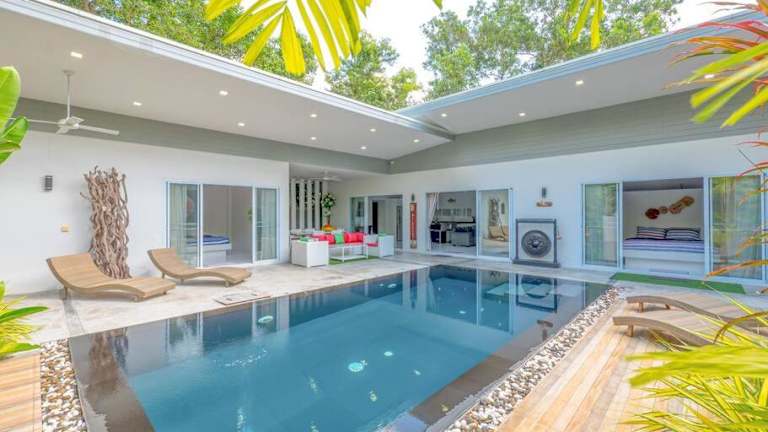 Die Villa verfügt über drei Schlafzimmer sowie eine gut ausgestattete Küche und einen Flachbild-TV. Handtücher und Bettwäsche werden bereitgestellt. Die Unterkunft bietet zudem einen eigenen Garten und ermöglicht das Entspannen am Pool.