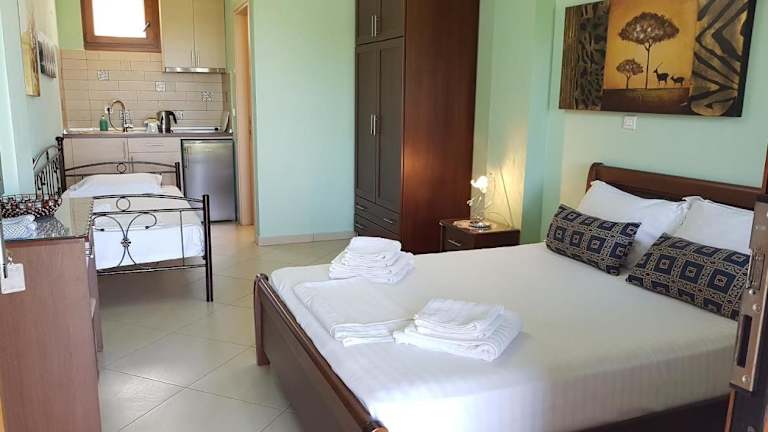 Die Zimmer der Villa Melina 1 sind mit einem Balkon ausgestattet, bieten einen Ausblick auf das Meer, den Garten oder die Berge. Alle Studios und Apartments sind klimatisiert und verfügen über einen TV sowie eine Küchenzeile mit Kühlschrank. Ein eigenes Bad mit Dusche ist ebenfalls vorhanden.