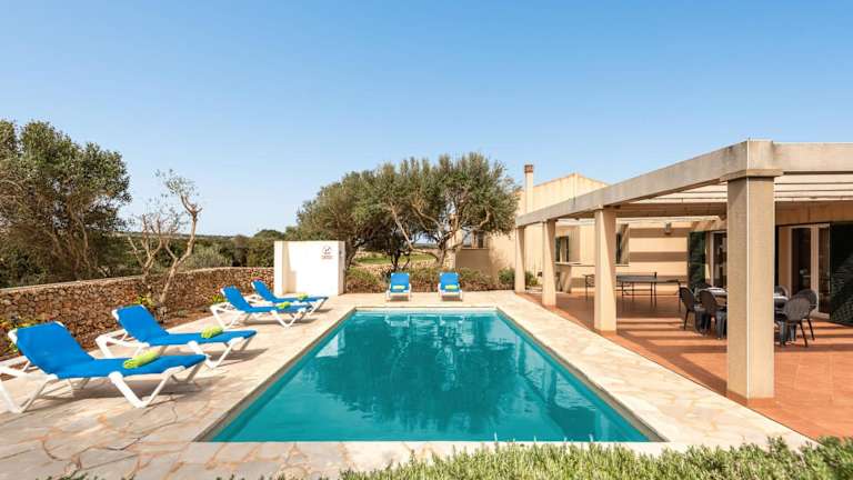 Die Villa Menorca Flomertor 2 by Mauter Villas in Cala en Blanes ist eine ideale Unterkunft für einen entspannten und komfortablen Urlaub auf Menorca. Mit einem schönen Garten, einem ganzjährig geöffneten Außenpool und einer Terrasse bietet die Villa alles, was man für einen erholsamen Aufenthalt benötigt. Die Villa verfügt über 3 Schlafzimmer, ein Wohnzimmer und eine voll ausgestattete Küche. Zudem gibt es kostenfreies WLAN und kostenlose Privatparkplätze. Die Lage der Villa ist ideal, da der Strand Cala'n Blanes nur 1,4 km entfernt ist und der Strand Cala'n Brut nach 1,7 km erreicht werden kann.