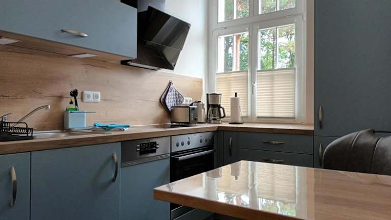 Die Unterkunft verfügt über eine voll ausgestattete Küche, die es Gästen ermöglicht, eigene Mahlzeiten zuzubereiten. Zur Ausstattung gehören ein Kühlschrank, ein Geschirrspüler, ein Ofen, eine Herdplatte und eine Kaffeemaschine. Es sind zudem Gartenmöbel vorhanden, die eine Nutzung der Gartenfläche erlauben.