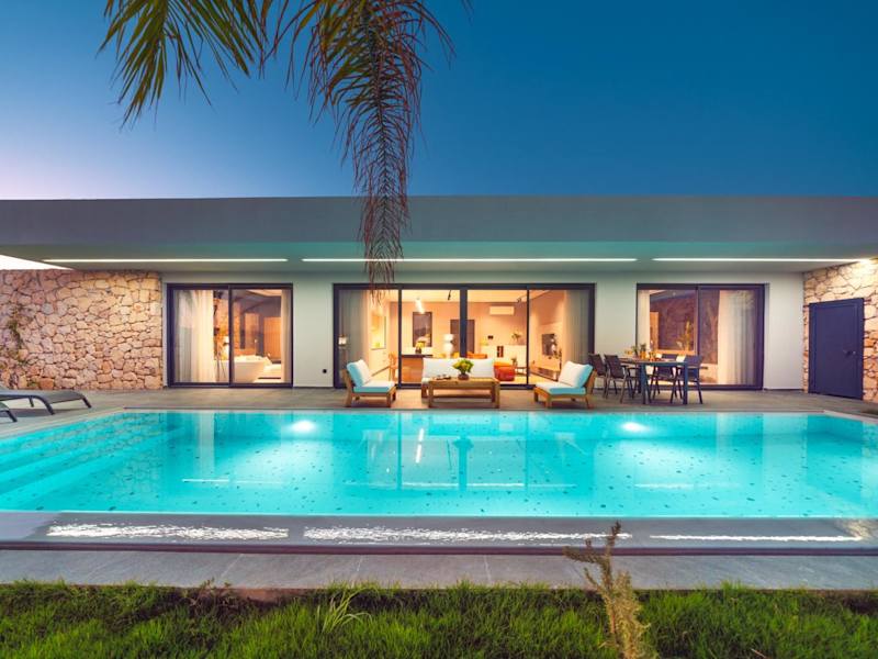Die Villa umfasst zwei Schlafzimmer, ein Wohnzimmer und eine voll ausgestattete Küche mit Kühlschrank und Kaffeemaschine. Zudem stehen zwei Badezimmer mit Dusche und Haartrockner zur Verfügung. Handtücher und Bettwäsche werden bereitgestellt, und die Villa verfügt über Klimaanlage. Zusätzlich können Gäste einen Whirlpool nutzen.