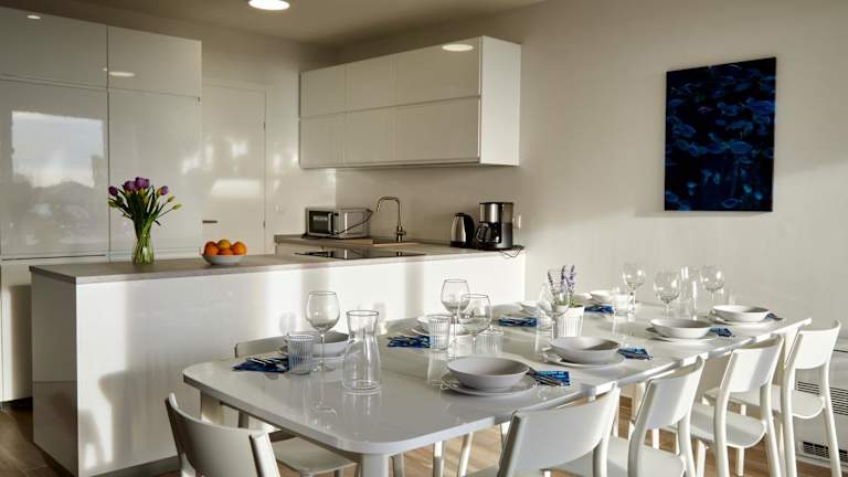 Die Villa umfasst 5 Schlafzimmer, ein Wohnzimmer und eine voll ausgestattete Küche mit Kühlschrank und Kaffeemaschine. Es sind zudem 4 Badezimmer mit Dusche und Whirlpool vorhanden. Handtücher und Bettwäsche werden bereitgestellt. Die Villa ist klimatisiert.
