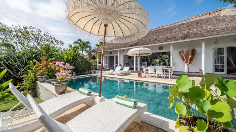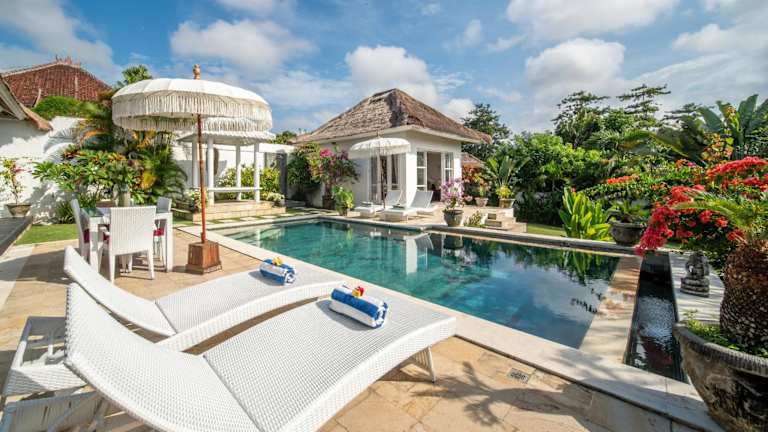 Die Villa Moana Poe Uluwatu bietet Übernachtungsmöglichkeiten in einer heimeligen Villa mit einer Terrasse, einem Garten und einem Aussenpool. Eine zusätzliche Bequemlichkeit stellt der eigene Pool dar. Die Villa ist ideal für den Aufenthalt und ist gut ausgestattet.
