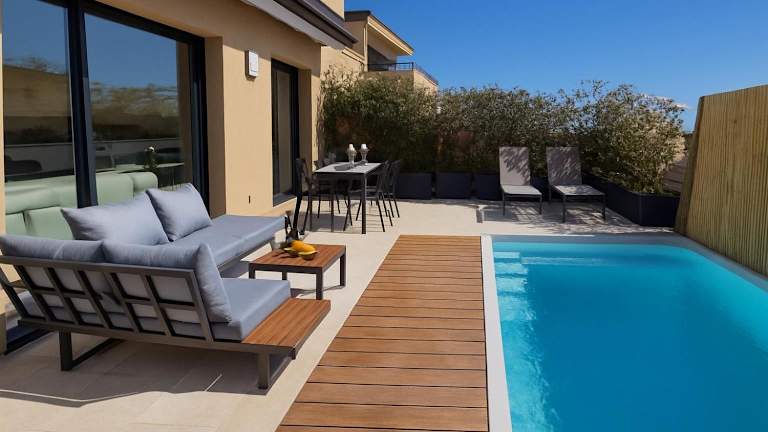 Die Unterkunft Villa Moderne de Standing besticht durch einen herrlichen Meerblick. Sie bietet eine Terrasse und einen Balkon, die zum Entspannen einladen. Ein saisonaler Aussenpool and ein kostenloser Privatparkplatz stehen ebenfalls zur Verfügung.