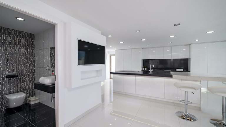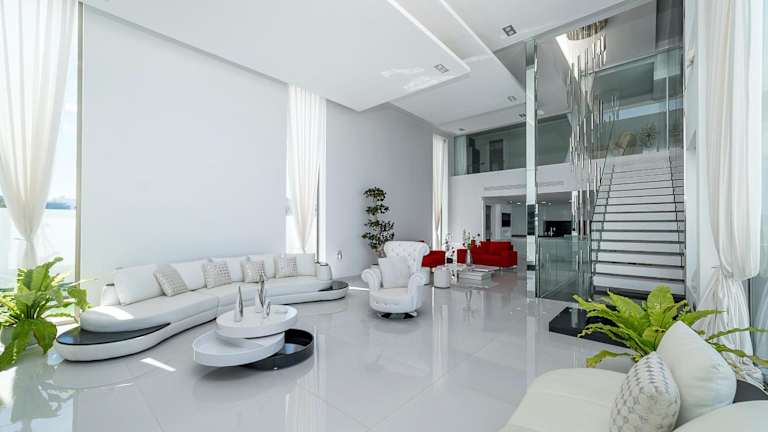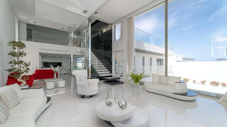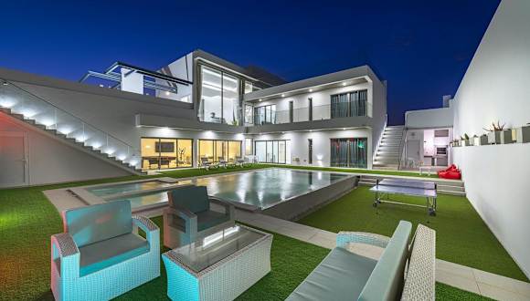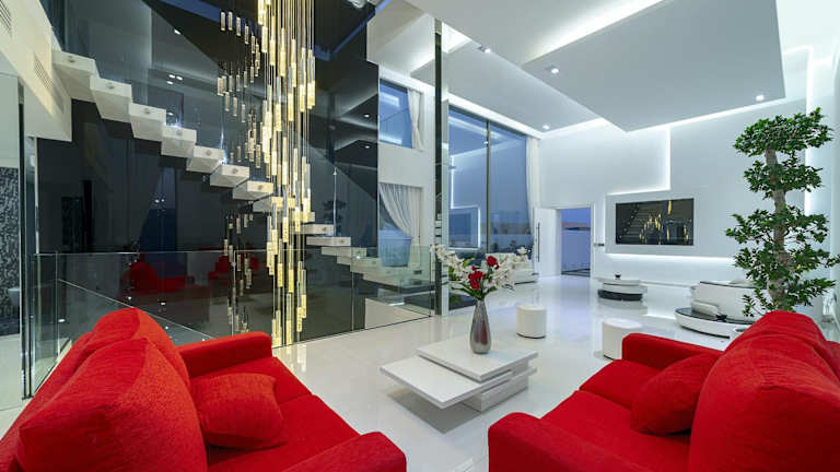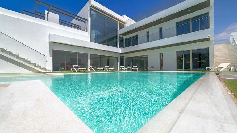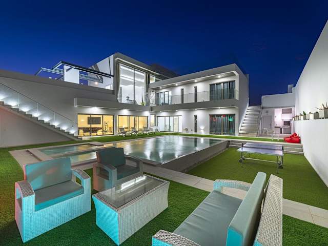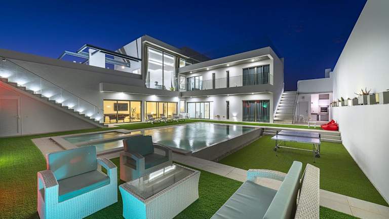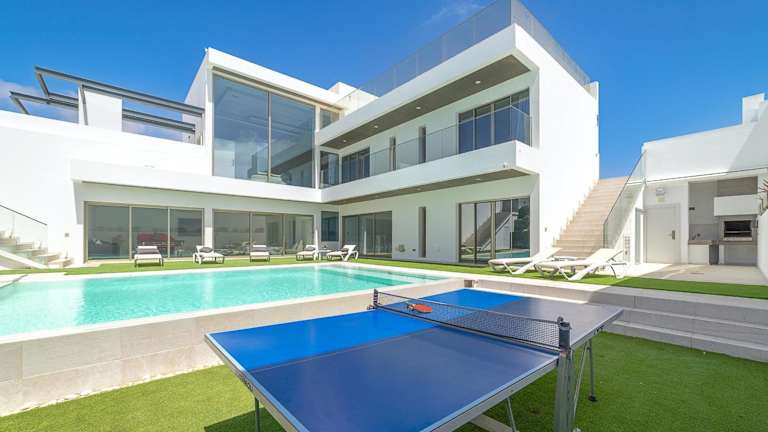 Die Villa umfasst 7 Schlafzimmer und 8 Badezimmer sowie eine voll ausgestattete Küche, die für Selbstversorger geeignet ist. Die Zimmer sind mit Bettwäsche und Handtüchern ausgestattet und bieten Zugang zu einem Balkon sowie einer Terrasse mit Blick auf den Pool. Ein TV mit Satellitenkanälen gehört ebenfalls zur Ausstattung.