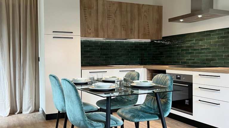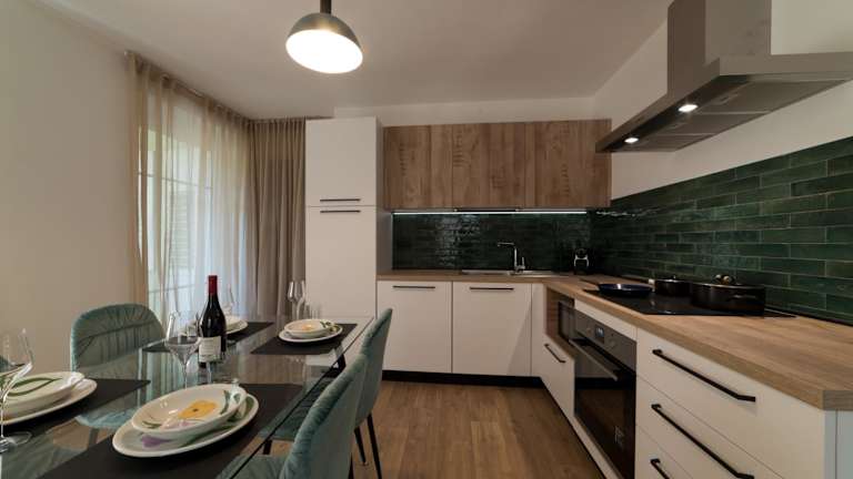 Das Apartment ist ausgestattet mit 2 Schlafzimmern, einem Wohnzimmer und einem Badezimmer. Zur Ausstattung gehören ein Flachbild-TV, eine gut ausgestattete Küche mit Kühlschrank und Geschirrspüler sowie ein Balkon mit Bergblick. Handtücher und Bettwäsche werden bereitgestellt. Haustiere sind auf Anfrage erlaubt.
