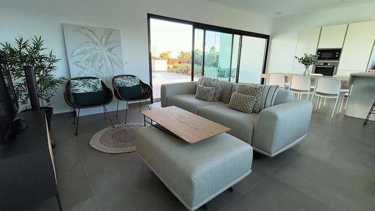 Das Ferienhaus verfügt über 3 Schlafzimmer und 2 Badezimmer. Die Ausstattung beinhaltet Bettwäsche und Handtücher sowie einen Flachbild-TV mit Satellitenkanälen. Des Weiteren gibt es einen Essbereich und eine voll ausgestattete Küche. Eine Terrasse mit Blick auf die Berge lädt zum Verweilen ein.