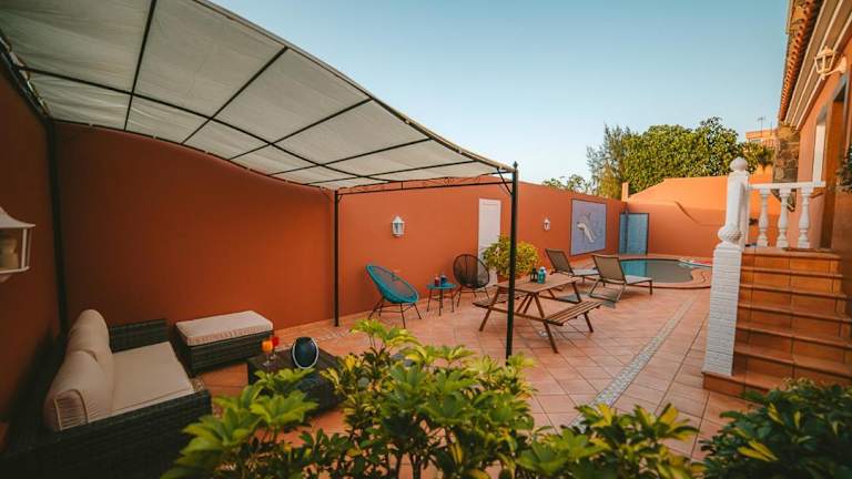 Die Villa Morada Sonneland con piscina privada climatizada befindet sich in Maspalomas, nur wenige Kilometer von beliebten Attraktionen wie dem Aqualand Maspalomas und dem Einkaufszentrum Yumbo Centrum entfernt. Die Lage bietet zudem einen Blick auf die Berge und einen direkten Zugang zu Freizeitmöglichkeiten in der Umgebung.