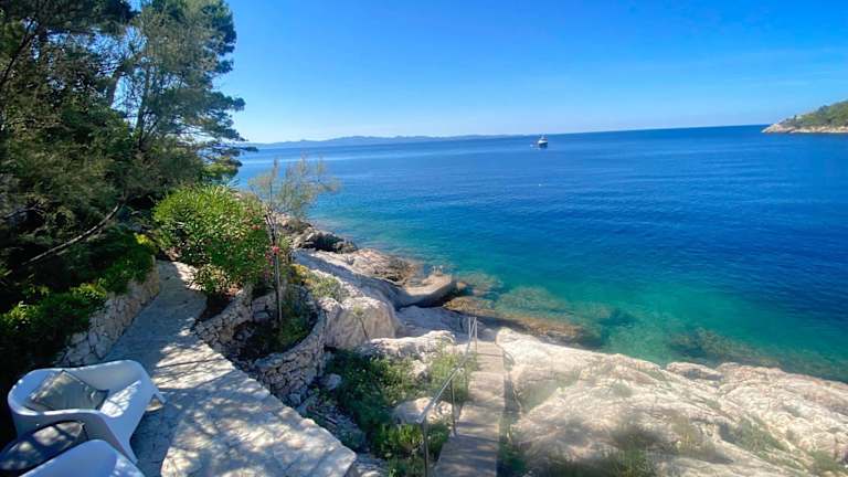 Die Unterkunft liegt in Trstenik, nur 100 m vom Strand Škamp entfernt. Die umliegende Region bietet einen eigenen Strandbereich sowie die Möglichkeit, am Strand Trstenik und am Strand Zamali, die sich in einer Entfernung von 200 m und 300 m befinden, zu entspannen.