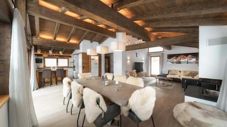 Die Ferienwohnung umfasst 5 Schlafzimmer, ein gemütliches Wohnzimmer sowie eine gut ausgestattete Küche. Zudem sind 3 Badezimmer mit Dusche und Whirlpool vorhanden. WLAN ist kostenlos verfügbar, und es gibt einen Satelliten-Flachbild-TV. Eine Terrasse bietet einen Blick auf die Berge.