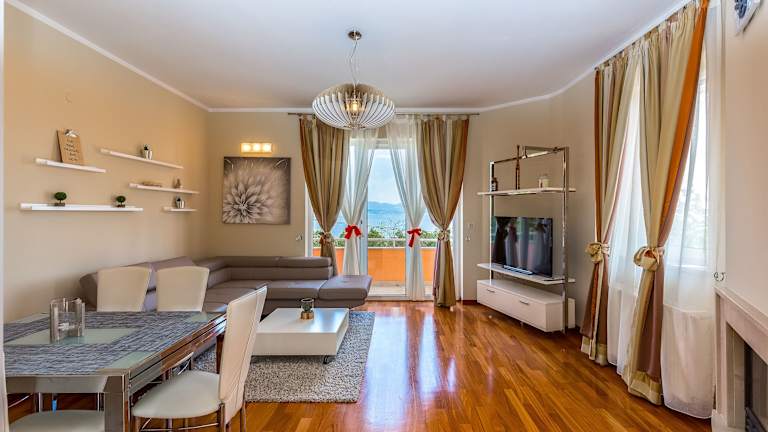 Die Villa Nada liegt am Fuße des Berges Učka und bietet einen atemberaubenden Panoramablick auf die Kvarner Bucht. Der Strand ist nur 800 m entfernt, so dass Sie schnell und bequem das klare Wasser der Adria erreichen können. Das Stadtzentrum von Lovran mit seinen charmanten Gassen und Restaurants ist ebenfalls nur 500 m entfernt. Der Flughafen Rijeka ist 25 km entfernt und bietet eine gute Anbindung an internationale Flugverbindungen.