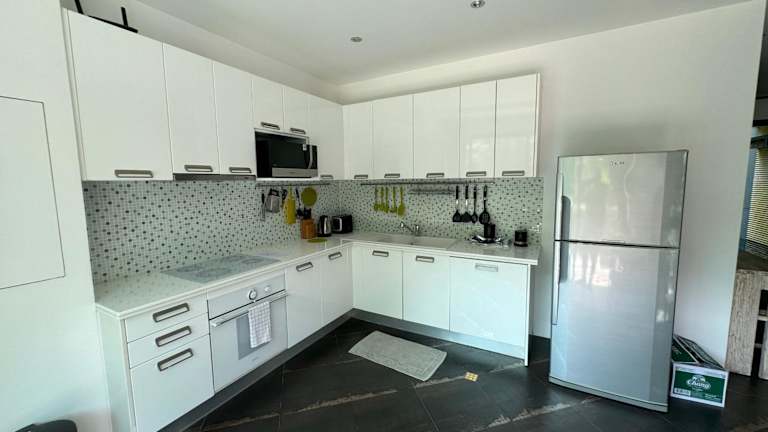 Die Villa verfügt über zwei Schlafzimmer sowie ein modernes Wohnzimmer. Ausgestattet sind die Zimmer mit einem Flachbild-TV und Klimaanlage. Eine Küche steht den Gästen ebenfalls zur Verfügung.