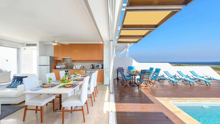 Die Villa verfügt über 4 Schlafzimmer, eine Küche mit Kühlschrank und Geschirrspüler sowie 4 Badezimmer mit Dusche, Haartrockner und Waschmaschine. Es werden Handtücher und Bettwäsche bereitgestellt. Zudem profitieren Gäste von einem Balkon und einem Aussenpool.