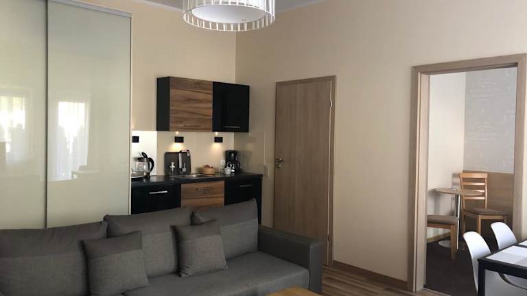 Im geräumigen Speiseraum wird ein Frühstücksbuffet serviert, das den Gästen einen guten Start in den Tag ermöglicht. Zudem steht eine Gemeinschaftsküche auf jeder Etage zur Verfügung, wo man sich während seines Aufenthalts selbstständig versorgen kann. Zu den Extras gehören ein Set mit Mineralwasser, Tee und Kaffee zur Begrüssung.