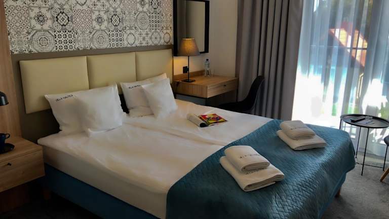 Die Villa Nautica befindet sich im Zentrum von Łeba, nur 350 Meter vom Hafen und Yachthafen entfernt. Der Ostseestrand ist in einer Distanz von 950 Metern gut erreichbar. Die Umgebung bietet zahlreiche Freizeitmöglichkeiten und Sehenswürdigkeiten, wie das Schmetterlingsmuseum, das nur 200 Meter entfernt liegt, sowie den Labirynt Park Łeba in einer Entfernung von 1,4 Kilometern. Der Bahnhof Łeba ist 1 Kilometer entfernt.