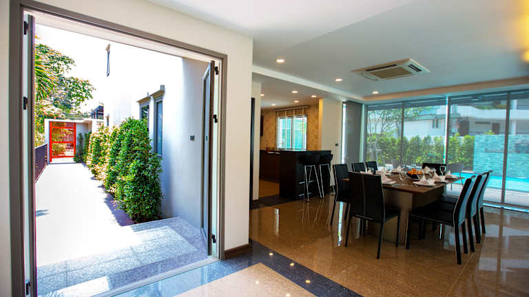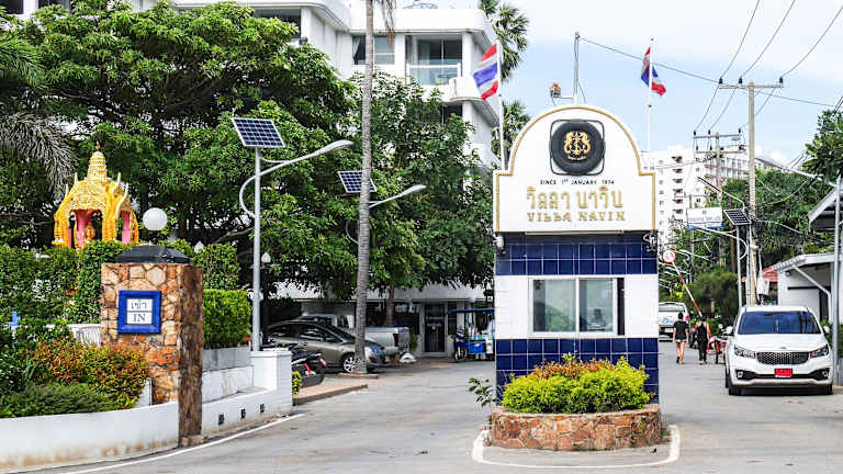 Die Villa Navin liegt direkt am Strand in Jomtien, etwa 4 km vom Schwimmenden Markt Pattaya und 7 km vom Mimosa Pattaya entfernt. Der internationale Flughafen U-Tapao ist 27 km entfernt. In der näheren Umgebung finden sich Einkaufsmöglichkeiten und diverse Freizeitangebote.
