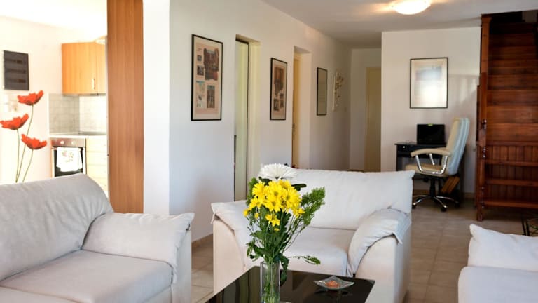 Die Villa umfasst 4 Schlafzimmer und ein Wohnzimmer, zusammen mit einer voll ausgestatteten Küche, die einen Kühlschrank und eine Kaffeemaschine beinhaltet. Die 3 Badezimmer sind mit Duschen und kostenlosen Pflegeprodukten ausgestattet. Handtücher und Bettwäsche werden bereitgestellt.