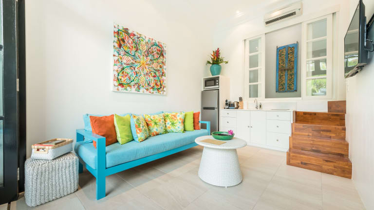 Die Villa besteht aus einem Schlafzimmer, einem Wohnzimmer und einer voll ausgestatteten Küche mit Kühlschrank und Kaffeemaschine. Es gibt zwei Badezimmer mit Dusche und kostenlosen Pflegeprodukten. Handtücher und Bettwäsche werden bereitgestellt.