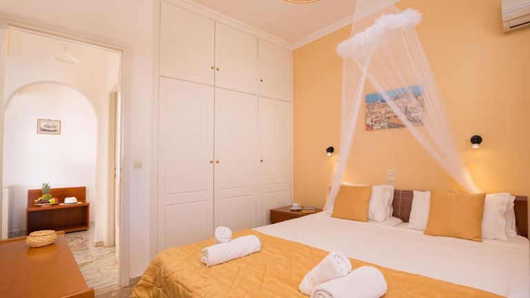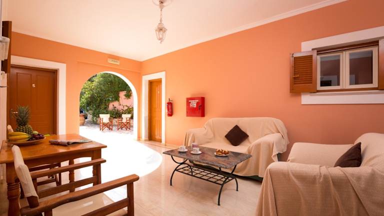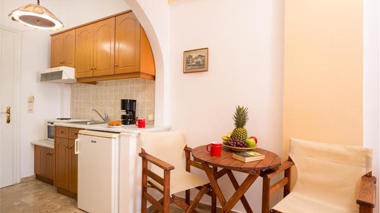 Die Studios und Apartments sind mit einer Küchenzeile mit Kochfeldern, Wasserkocher und Minikühlschrank ausgestattet. Der Wohnbereich ist mit einem TV versehen und kostenfreies Wifi steht zur Verfügung. Bettwäsche, Handtücher und Wäsche werden nach den Richtlinien der örtlichen Behörden gewaschen.
