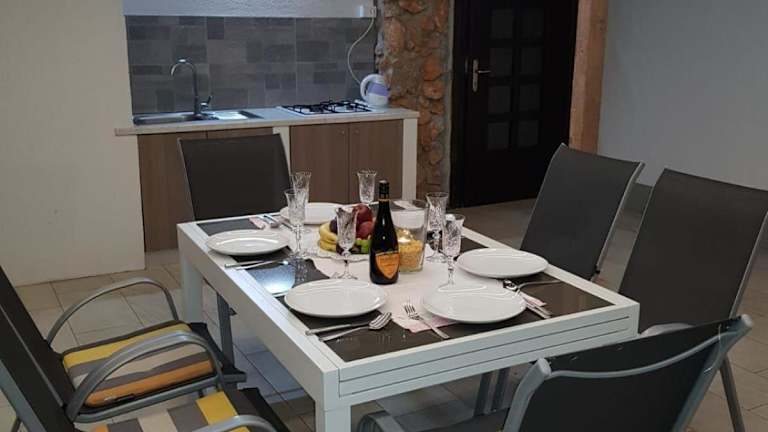 Die voll ausgestattete Küche ermöglicht es den Gästen, eigene Mahlzeiten zuzubereiten. Zudem steht ein Grill zur Verfügung, um gesellige Grillabende zu verbringen. Es sind auch Handtücher und Bettwäsche vorhanden.