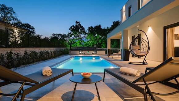 Die Unterkunft Villa Nobu bietet Übernachtungsmöglichkeiten in einer klimatisierten Villa mit eigenem Pool und Garten. Diese Unterkunft umfasst eine voll ausgestattete Küche, einen eigenen Garten, eine Terrasse sowie einen Spielplatz für Kinder. Es stehen zudem Grillmöglichkeiten zur Verfügung.