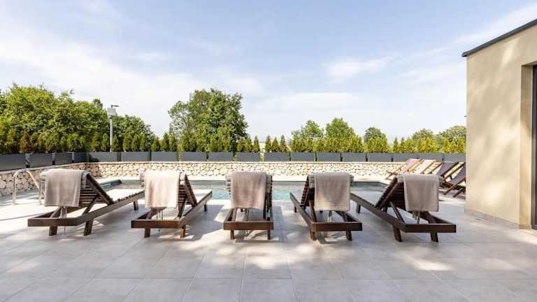 Es besteht die Möglichkeit, einen Veloverleih in Anspruch zu nehmen, um die schöne Umgebung und Landschaft zu erkunden. Der saisonale Aussenpool lädt zur Entspannung ein.