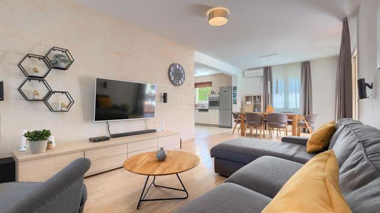 Die Villa Nona Nina befindet sich in Tinjan, nur 32 km vom Aquapark Istralandia und der Kirche der heiligen Euphemia in Rovinj entfernt. Die Umgebung bietet Ausflugsziele und Annehmlichkeiten, ideal für Gäste, die die Region erkunden möchten.