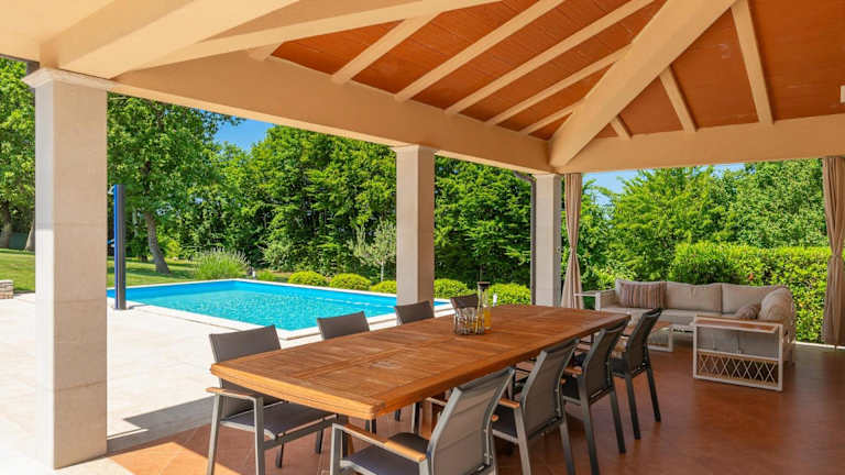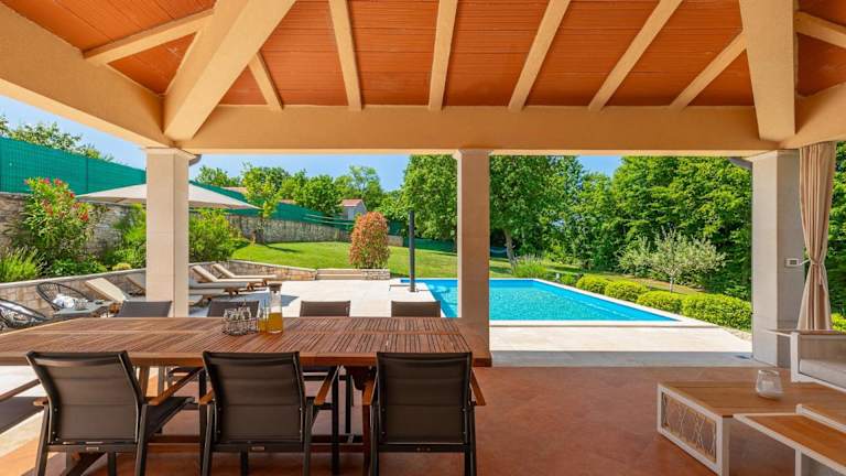 Die Villa Nona Nina bietet eine heimelige Atmosphäre und verfügt über einen eigenen Pool sowie eine Gemeinschaftsküche. Sie ist umgeben von einem Garten und bietet eine Terrasse, die zum Entspannen einlädt. Die Villa ist klimatisiert und bietet Platz für einen angenehmen Aufenthalt in einer ruhigen Umgebung.