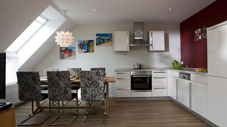 Die Ferienwohnung beinhaltet einen Balkon, zwei Schlafzimmer, ein Wohnzimmer sowie eine gut ausgestattete Küche mit einem Geschirrspüler und einem Ofen. Zudem steht ein TV zur Verfügung. Die Unterkunft ist ein Nichtraucherbereich.