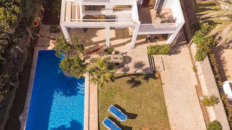 Die Unterkunft Villa Ocala befindet sich in Cala d'Or, nur wenige Gehminuten vom Strand Calo des Pou und dem Leuchtturm Far des Cap de ses Salines entfernt. Die Umgebung bietet eine malerische Landschaft und zahlreiche Sehenswürdigkeiten wie die Tropfsteinhöhlen Coves del Drac, die etwa 28 km entfernt sind. Der Flughafen Palma de Mallorca ist 60 km von der Villa entfernt.