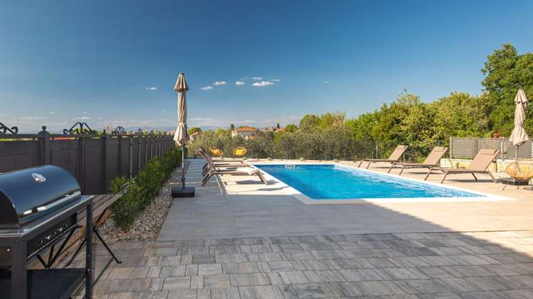 Die Villa bietet verschiedene Freizeitmöglichkeiten, darunter Angeln, Tauchen und Velofahren in der Umgebung. Ein saisonaler Aussenpool mit Sonnenliegen und Sonnenschirmen ergänzt das Freizeitangebot.