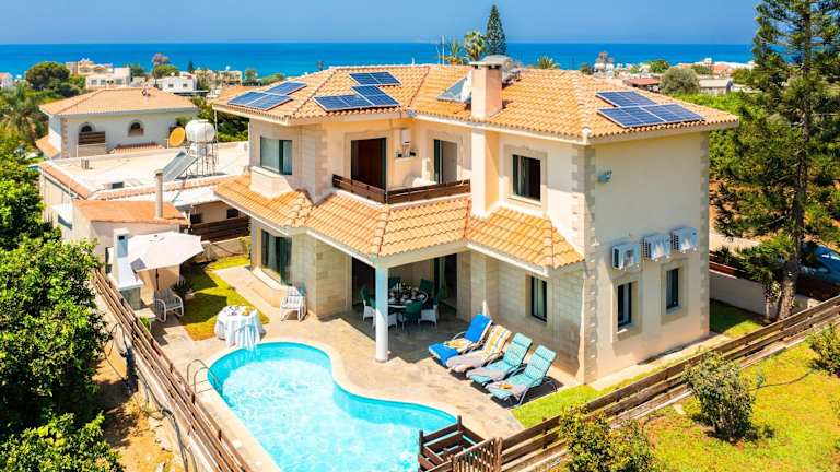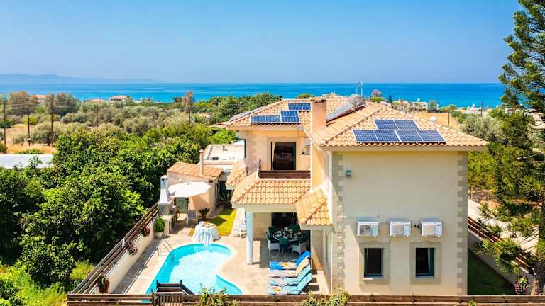 Die Villa umfasst klimatisierte Übernachtungsmöglichkeiten mit einem Balkon und einer Terrasse mit Meerblick. Sie bietet 3 Schlafzimmer, ein Wohnzimmer mit TV, eine gut ausgestattete Küche mit Kühlschrank und Geschirrspüler sowie 3 Badezimmer mit Dusche. Handtücher und Bettwäsche werden bereitgestellt.