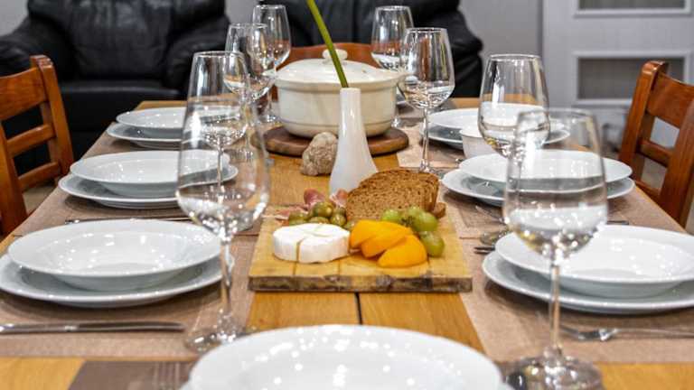 Die Villa verfügt über eine Gemeinschaftsküche, in der Gäste ihre eigenen Mahlzeiten zubereiten können, jedoch keine spezifischen Verpflegungsmöglichkeiten angegeben sind.